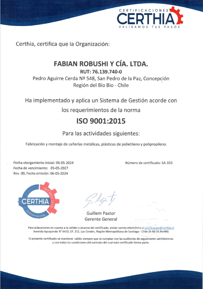 Certificado ISO 9001:2015